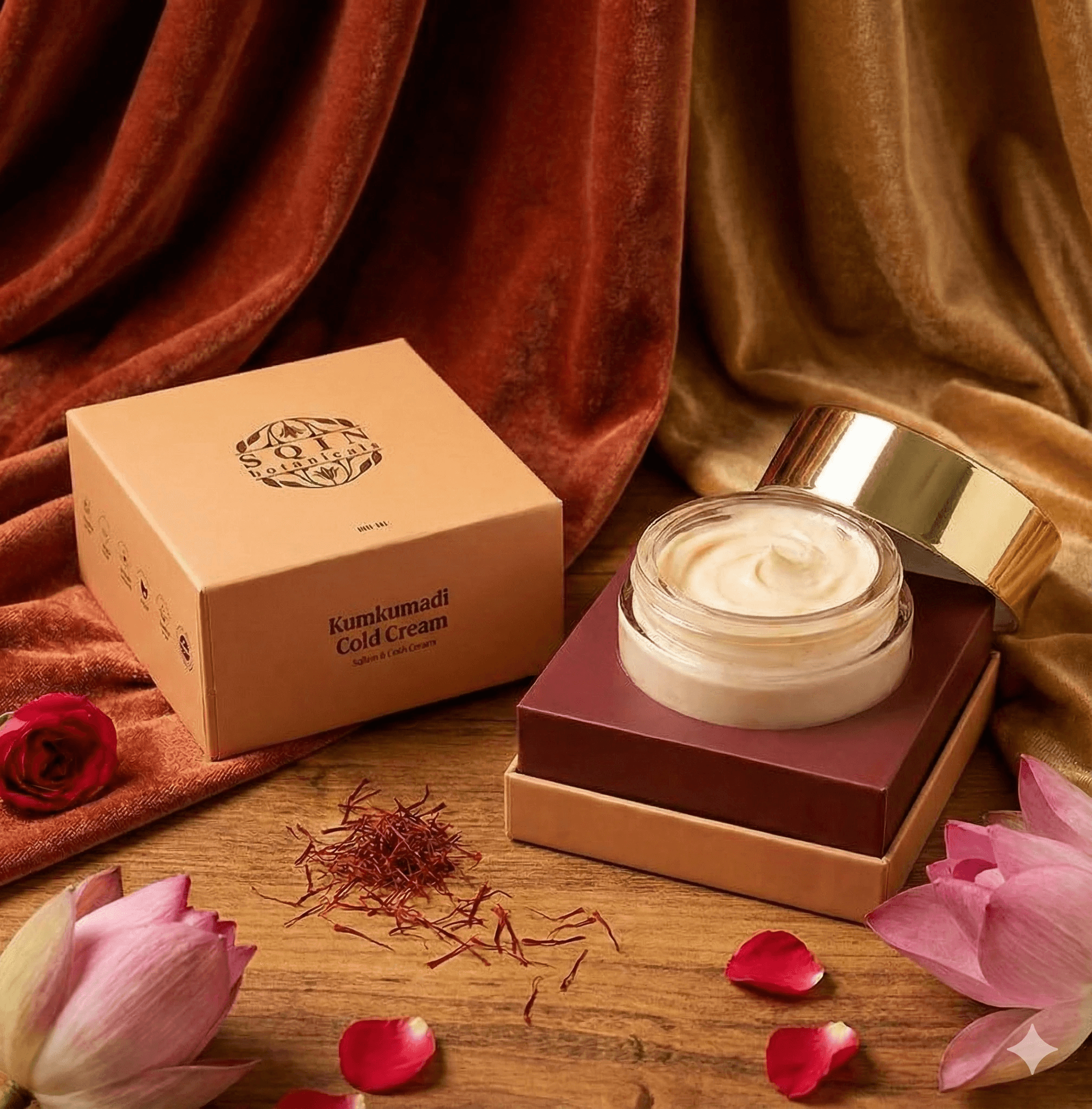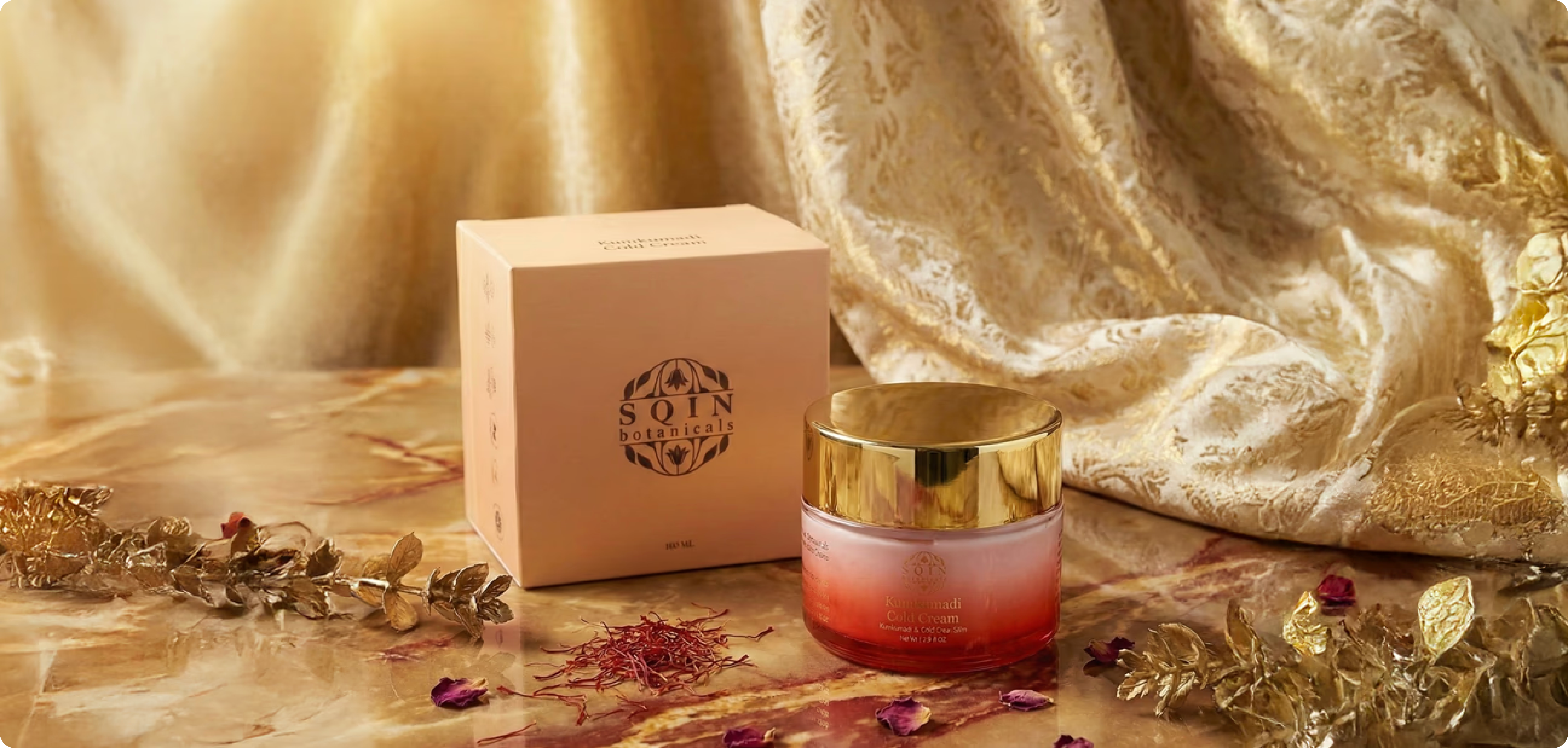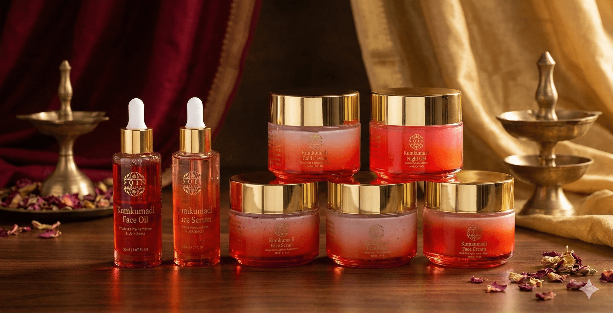 The Kumkumadi range required a premium retail presence while retaining Ayurvedic heritage credibility.