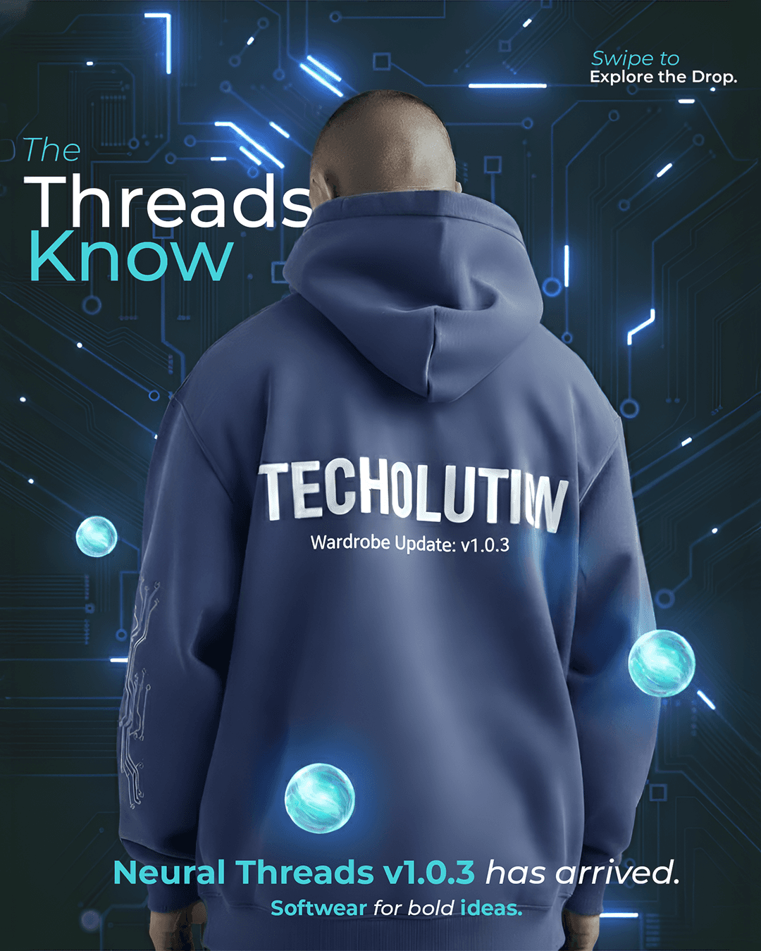 Neural Threads v1.0.3 is a conceptual merch drop imagined for Techolution — a brand rooted in engineering, AI systems, and future design. The identity draws from circuit patterns, neural pathways, and the quiet intelligence of machine learning.